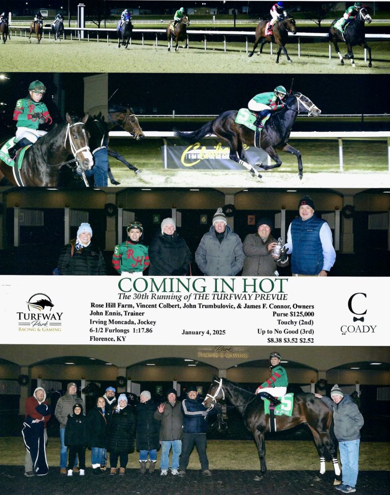 - Turfway Park Racing & Gaming in Florence KY, January 4, 2025; 2nd: Touchy; 3rd: Up to No Good; 6-1/2 Furlongs 1:17.86; Purse $125,000