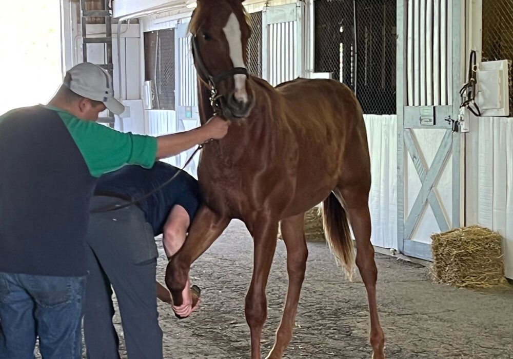 Sales Preparation: Sales prep is an ongoing process for young horses including feeding good quality forage or pasture, grooming, and being exercised – all of which prepares them for sale time. Yearlings preparing for sale will experience a schedule change in feeding and turning out, they are taught how to wear a chifney, how to stand and adjust to a smaller paddock – all of which prepares them for the upcoming sale season.